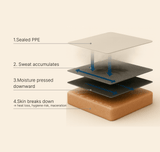 Conventional gloves and liners are designed for airflow — not sealed, high-pressure environments like gloves. Inside gloves, sweat has nowhere to go. Under pressure, moisture stays trapped against the skin — softening the barrier and making irritation harder to recover from. DRYE was engineered for sealed environments. Instead of absorbing sweat, it displaces moisture away from the skin, before pressure and friction can break it down.