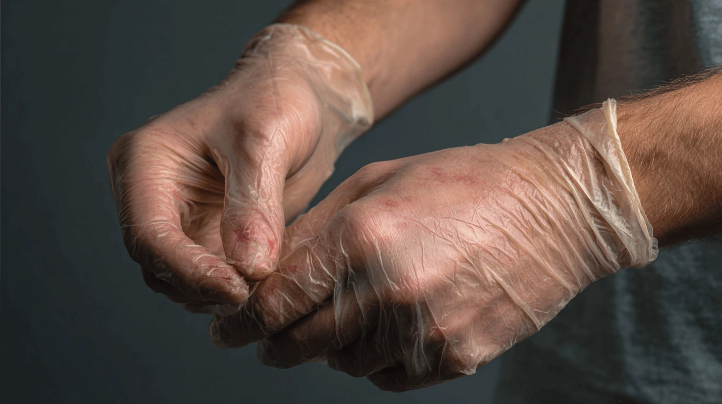 Moisture + heat + friction weaken the barrier — making irritation harder to settle during long glove use.